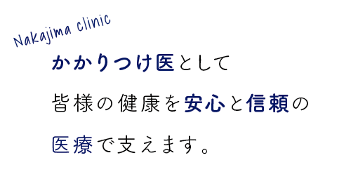 当クリニックは、外来、リハビリ、訪問診療の3本柱により、患者さんが住み慣れた場所で自分らしい人生を安心して送れるように全力でサポートします。 「みなさんが笑顔になれるお手伝い」をモットーに、患者さんとご家族の気持ちに寄り添い、誠意ある医療を提供させていただきます。 私はここ北区十条で生まれ育ちました。慣れ親しんだ北区の地域医療に貢献すべく精進して参ります。高血圧などの生活習慣病、喘息などのアレルギー疾患、膝・腰などの 慢性痛、お子様の予防接種、認知症などの介護の不安、なんでもお気軽にご相談ください。